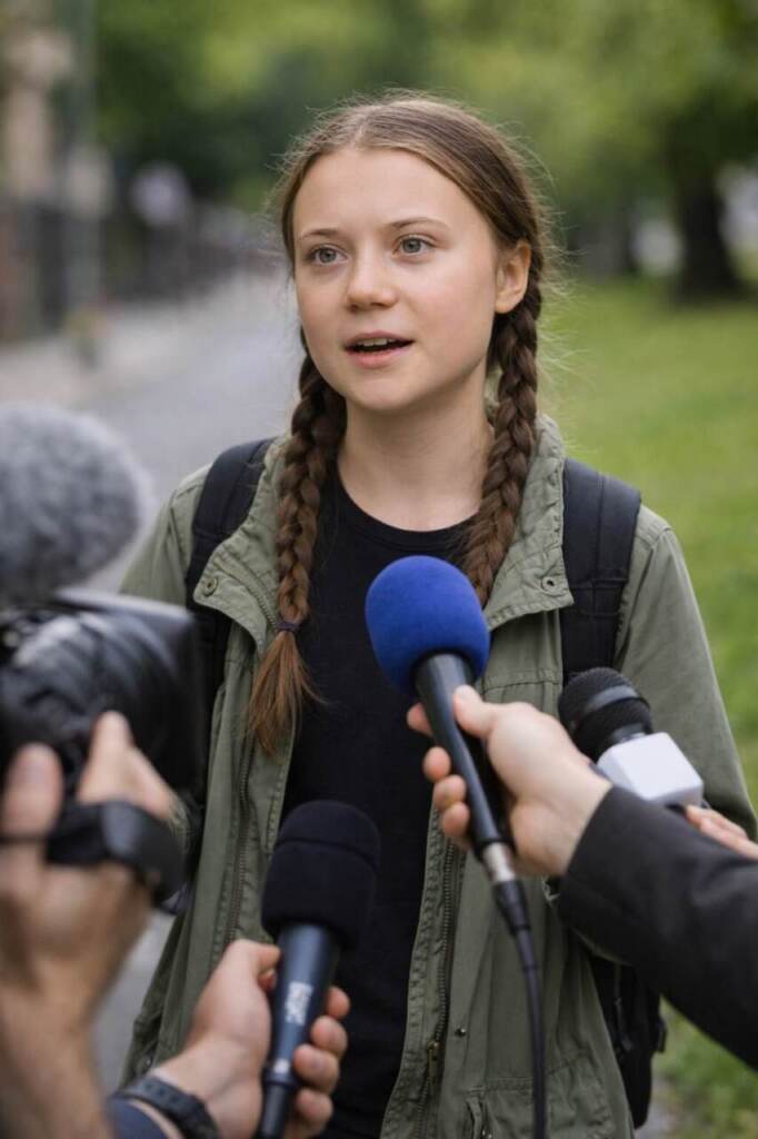 Екоактивістка Грета Тунберг дала коротке інтерв’ю під час перебування на одній із міських вулиць, де вона вкотре привернула увагу до проблеми кліматичних змін. Тунберг — шведська громадська діячка, яка здобула світову популярність завдяки своїй активній позиції щодо захисту довкілля та боротьби з глобальним потеплінням.